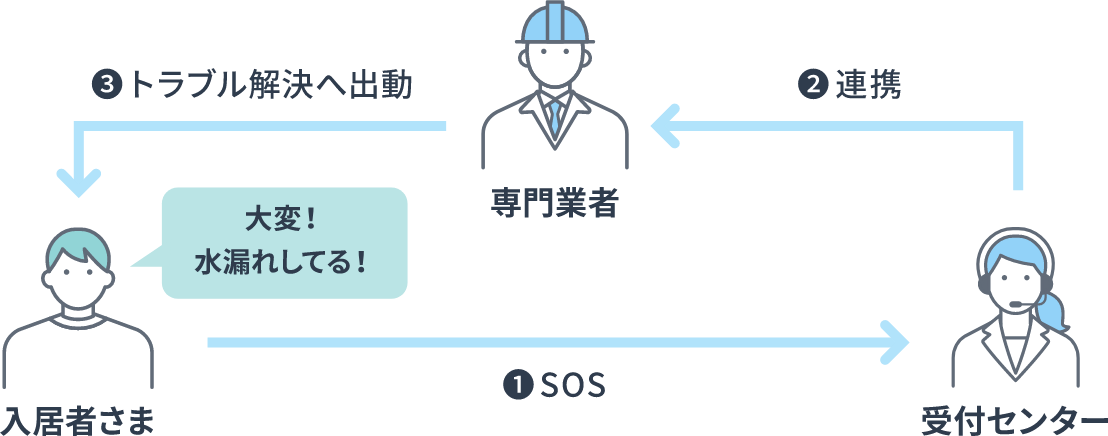 暮らしの中の「こまった!」が発生しても、24時間365日駆け付けサポートします。