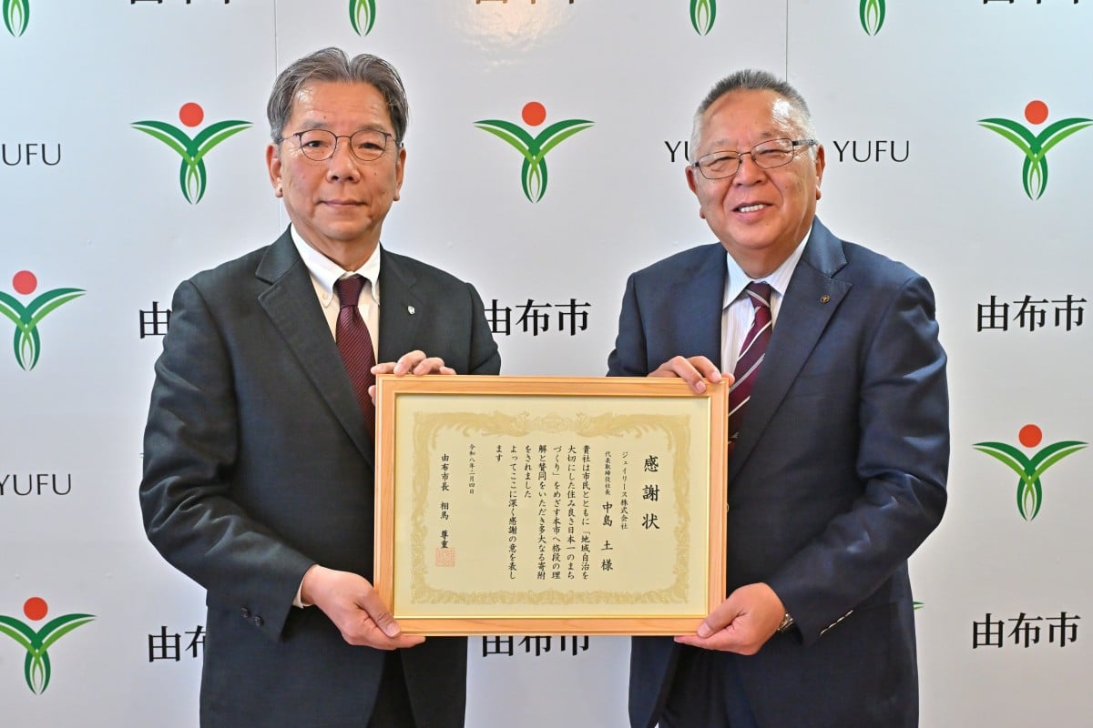 由布市よりまちづくりへ貢献した企業として感謝状をいただきました